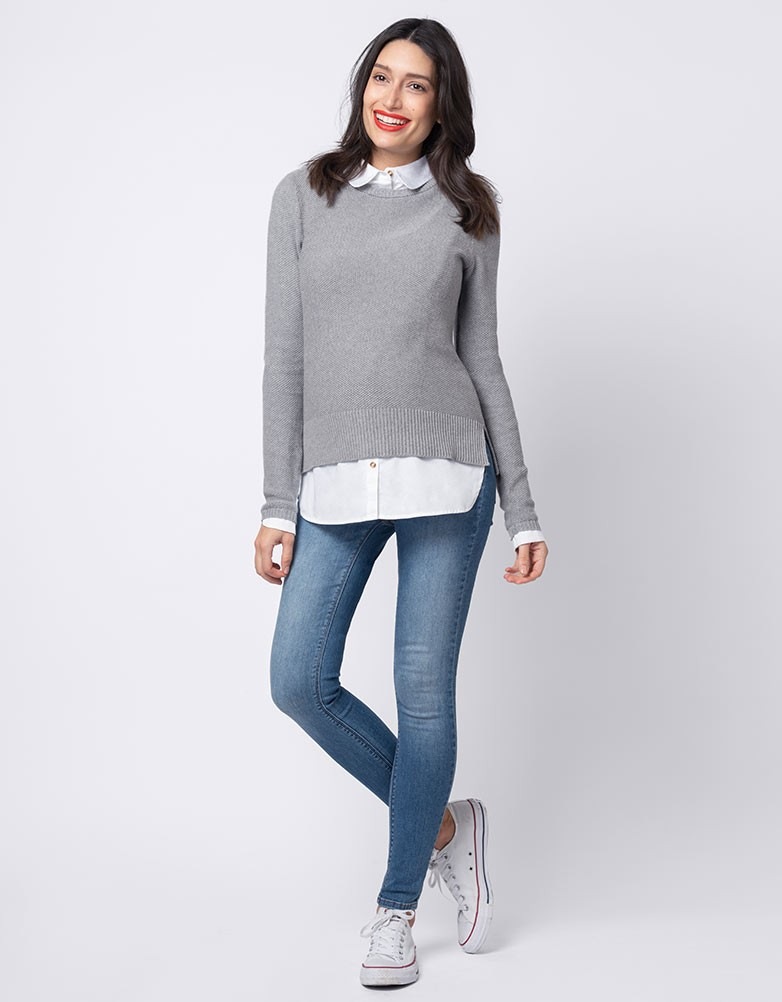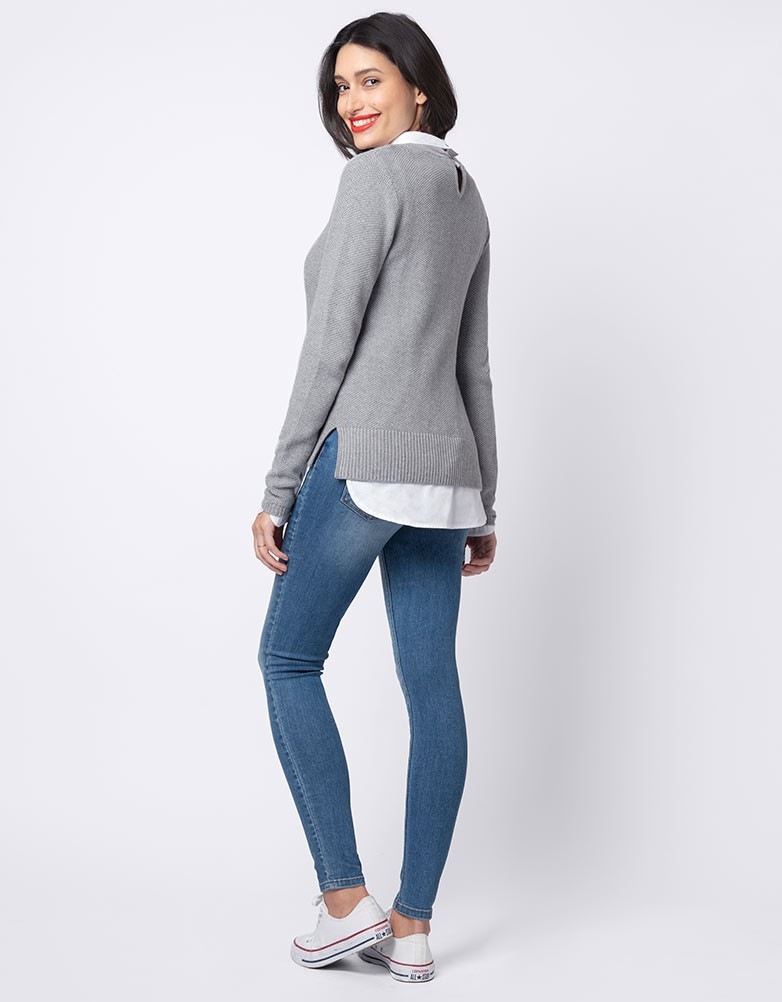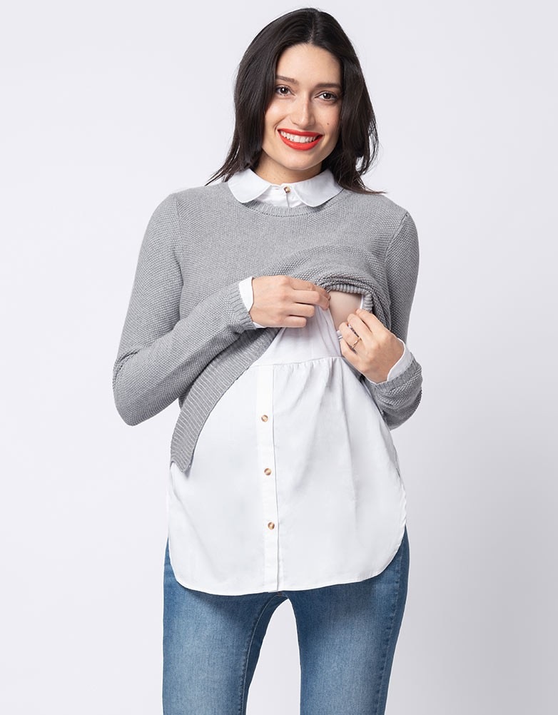 Seraphine JUPITER (ジュピター)<授乳対応>レイヤードシャツセーター -グレイ