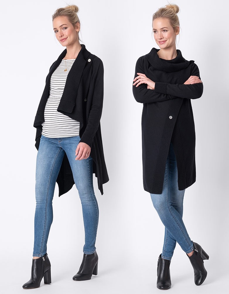 人気イギリスマタニティブランド<Seraphine(セラフィン)>の綿とカシミアをミックスした柔らかい着心地のカーディガン。アシンメトリーになった少し長めのレングスでアウターとしても活躍するアイテムです。
