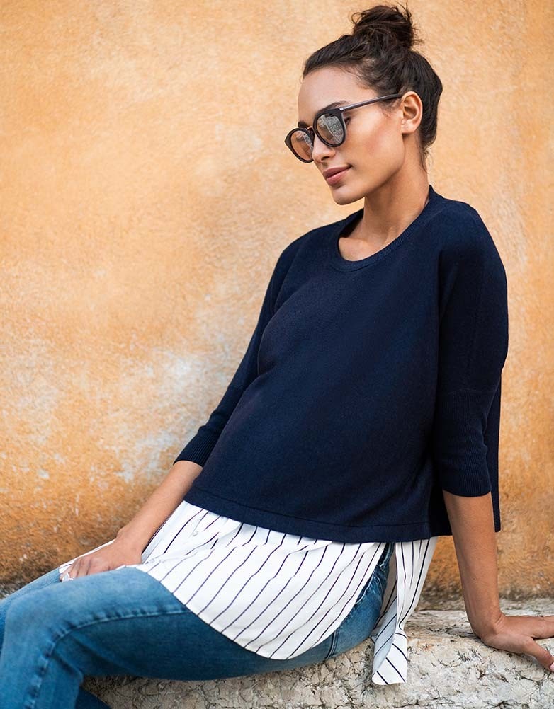 Seraphine LYLA <授乳対応>レイヤードシャツセーター -ネイビーストライプ