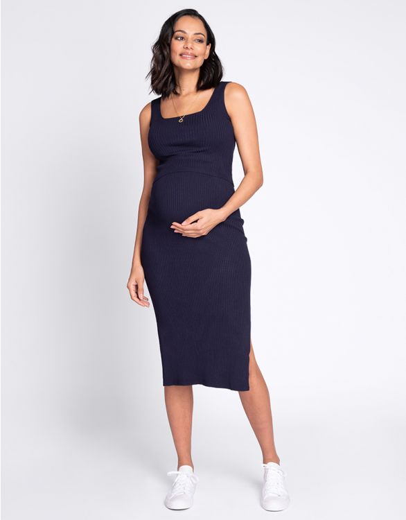 Seraphine GEM <授乳対応>ノースリーブリブニットマタニティワンピース -ネイビー
