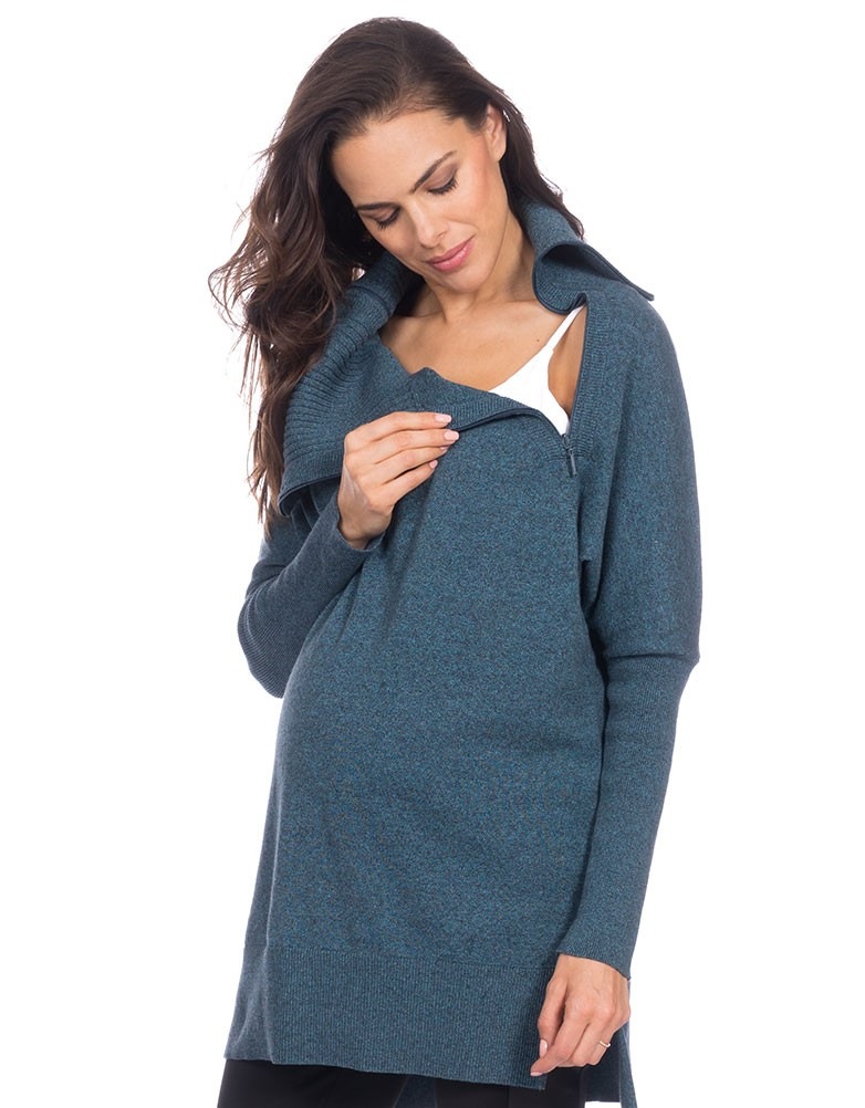 Seraphine EVELINA (エベリナ) <授乳対応>ジップコットンマタニティセーター -ネイビーストライプ