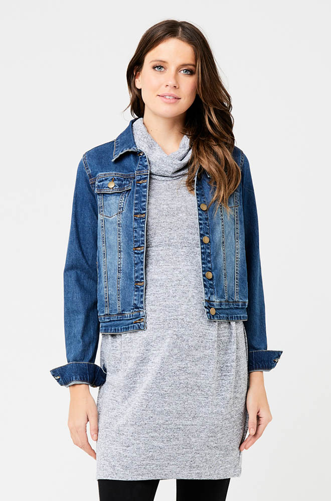 オーストラリアの人気マタニティブランド<RIPE maternity(ライプマタニティ)>の羽織りに便利なマタニティ用のデニムジャケット。
