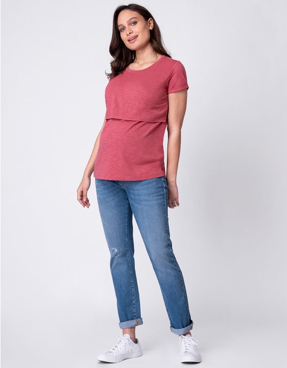 Seraphine FLORYN(フロリン)<授乳対応>カーブヘムマタニティデニムシャツ -ブルー
