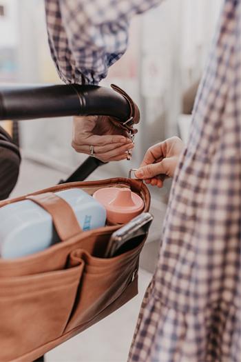 ストローラーオーガナイザーはベビーカーのハンドルに直接取り付けができ、両手を使って貴重品や赤ちゃんのお世話グッズなどを取り出せる優秀アイテム。ベビーカーでのお出かけにあると便利・快適なアイテムです。